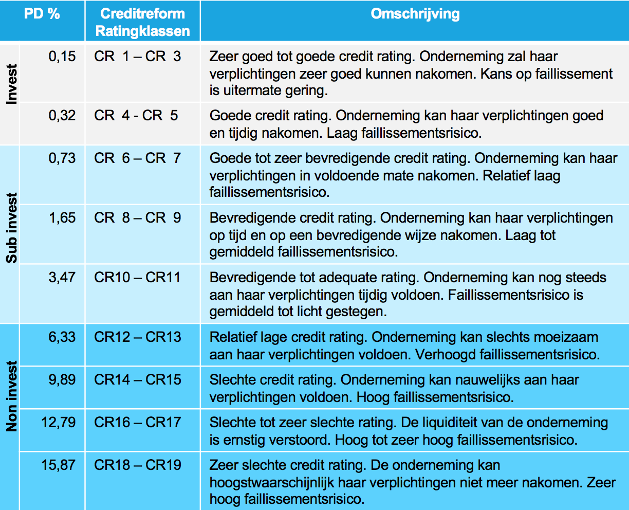 Hieronder ziet u een overzicht van de verschillende risicoklassen welke Creditreform hanteert.